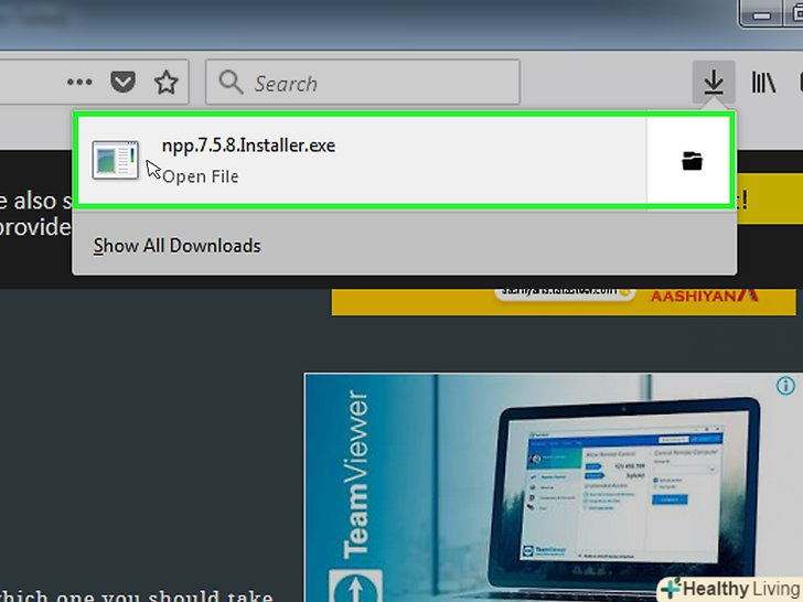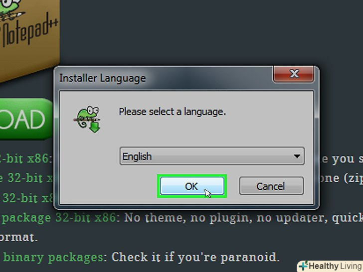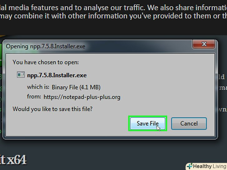 Натисніть на зелену кнопкуDownload (завантажити) посередині сторінки, щоб завантажити інсталяційний файл Notepad++.- Залежно від налаштувань браузера, вам може знадобитися вибрати місце збереження або підтвердити завантаження.
