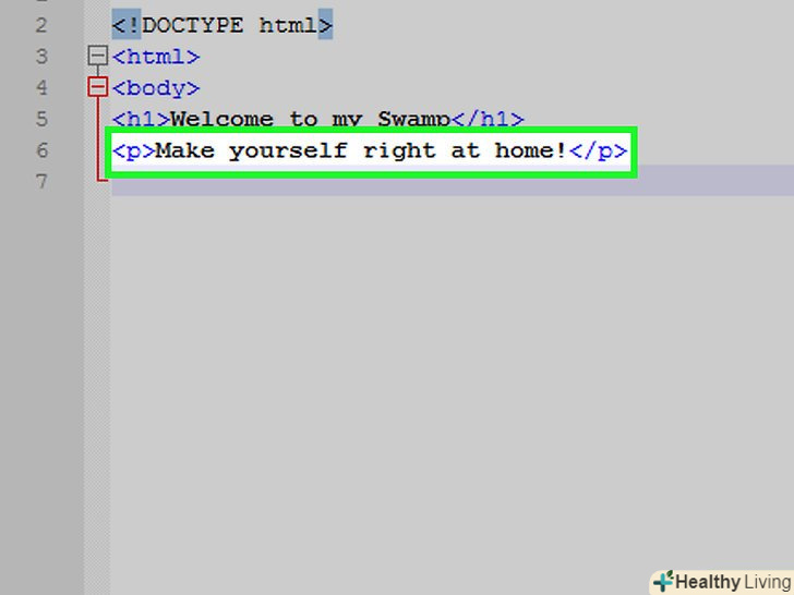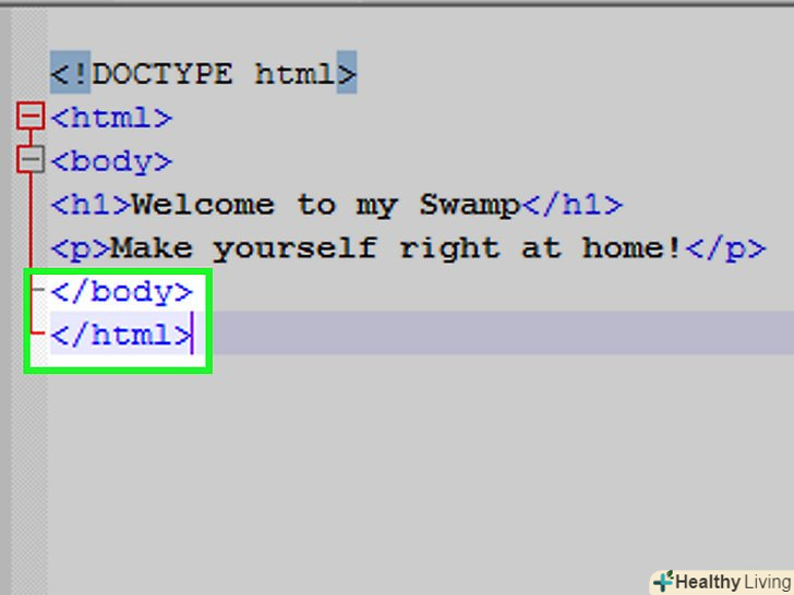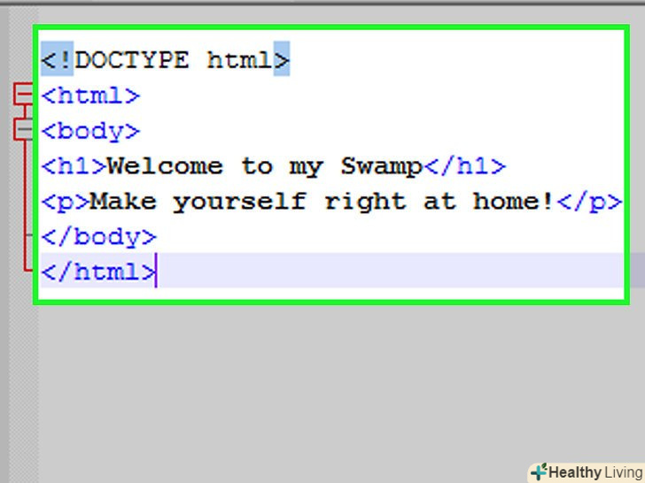 Перегляньте код програми. Він повинен виглядати наступним чином:lt;!DOCTYPE htmlgt;lt;htmlgt;lt;bodygt;lt;h1gt;Ласкаво просимо в моє болотоLt;/h1 gt;lt;pgt;відчувайте себе як вдома!lt;/pgt;lt;/bodygt;lt;/htmlgt;