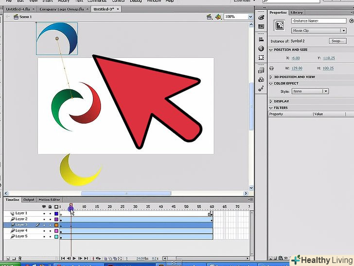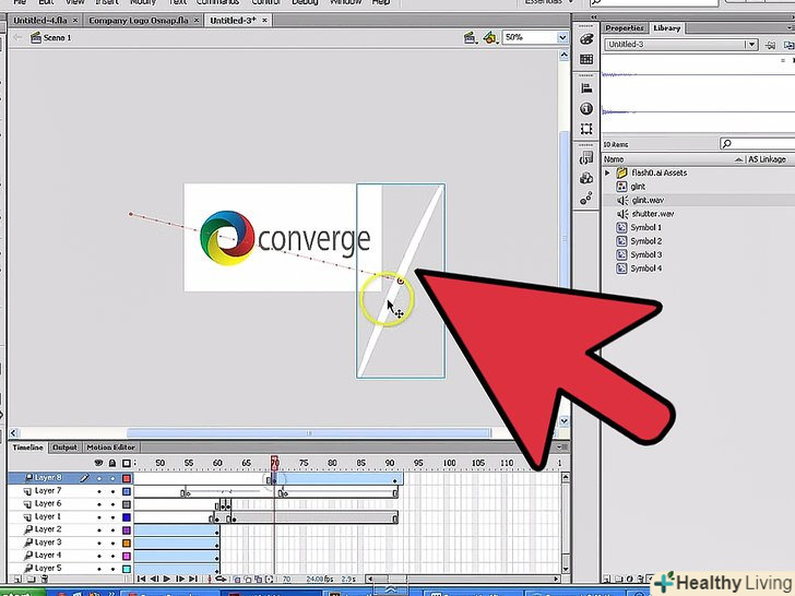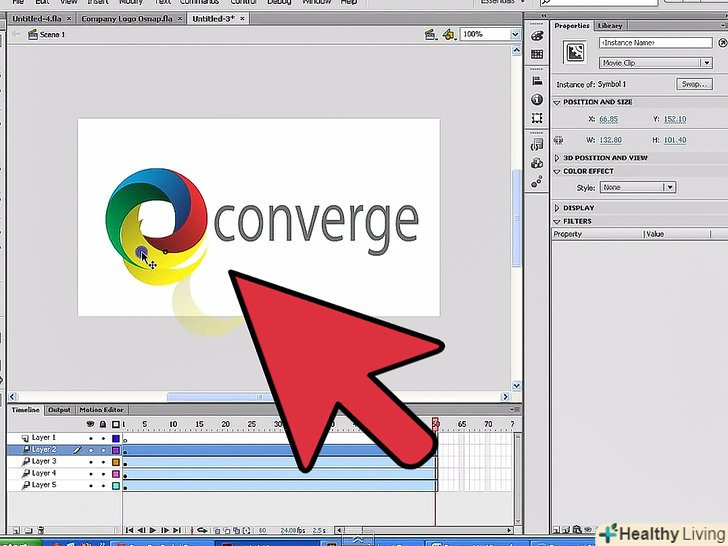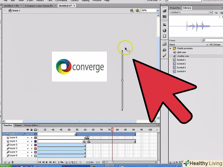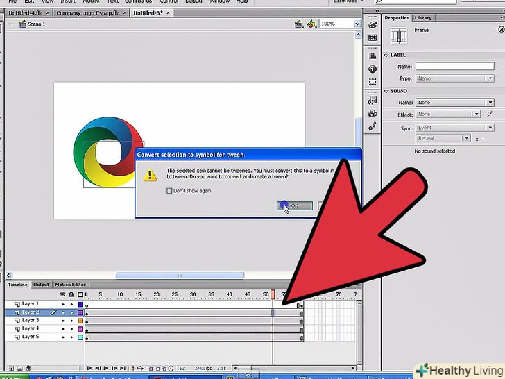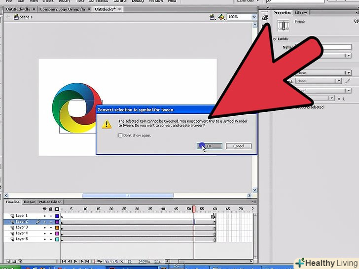 Тепер, коли у вас є створений коло, натисніть F8 (Mac і PC) для того, щоб вивести вікно конвертування (перетворення) в символ.Натисніть зображення, далі назвіть символ "circle", потім натисніть OK. Ви зараз створили символ, який можна "оживити". Перейдіть до своєї області шарів і перемістіть курсор до 5-го кадру і натисніть F6 (Mac і PC). Це створить ключовий кадр, який має коло в тому ж місці. Натисніть назад в 1-му кадрі, потім перейдіть до свого кола і натисніть його. Тепер ми зробимо його зникаючим в плані анімації.