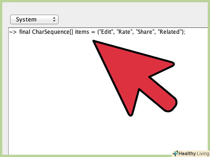 Створіть масив.використовуйте один з трьох типів списків. Якщо ви хочете додати опції з декількома варіантами відповідей, замість функції setMessage використовуйте список. Ваш список повинен мати масив, що складається з переліку доступних опцій. Список буде використовувати масив для відображення доступних опцій.Final CharSequence[] Items = {"змінити", "оцінити", "поділитися", "пов'язане"};