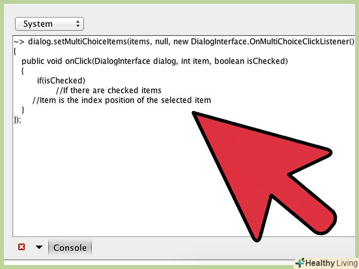 Створіть список з декількома варіантами вибору. використовуйте setMultiChoiceItems, якщо хочете, щоб користувач міг вибрати кілька варіантів. Ці опції будуть позначені зазначеними полями.Dialog.SetMultiChoiceItems(Items, Null, New DialogInterface.OnMultiChoiceClickListener() { Public Void OnClick(DialogInterface Dialog, Int Item, Boolean IsChecked){ If(IsChecked) / / якщо є відмічені поля //Item відповідає за положення покажчика вибраного елемента } });