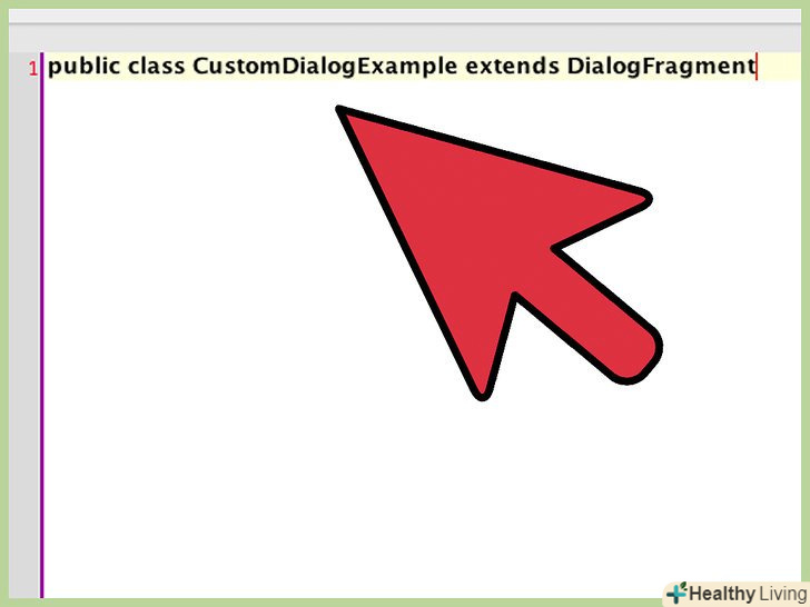 Створіть новий клас Java.новий клас дозволить відокремити код для вашого призначеного для користувача макета оповіщення. Натисніть "File" (Файл) gt;» New «(створити) gt;» Java Class " (клас Java). Введіть ім'я нового Java-класу і натисніть < span class="nowrap" title="This is not a clickable button; it illustrates the button one should find." style="font-family: Segoe UI, Frutiger, Frutiger Linotype, Dejavu Sans, Helvetica Neue, Arial, sans-serif;letter-spacing:0px;padding:0em .6em; border:1px solid; border-color:#AAA #555 #555 #AAA; -moz-border-radius: 0px; -webkit-border-radius: 0px; border-radius: 0px; background-color: #F2F2F2; background-image: -moz-linear-gradient(top, #FCFCFC, #E0E0E0); background-image: -o-linear-gradient(top, #FCFCFC, #E0E0E0); background-image: -webkit-linear-gradient(top, #FCFCFC, #E0E0E0); background-image: linear-gradient(top, #FCFCFC, #E0E0E0);">OK. Для цього прикладу ми назвемо цей клас»CustomDialogExample".