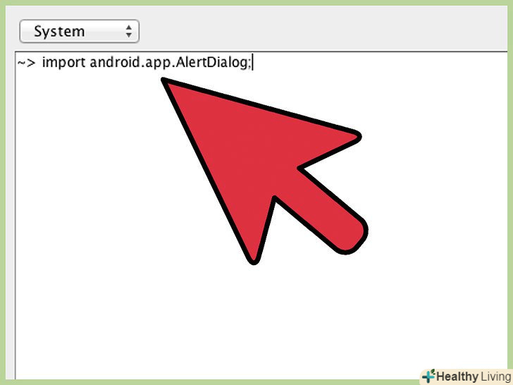 Імпортуйте клас AlertDialog для доступу до API. це необхідно, щоб отримати доступ до класу для створення запиту AlertDialog. Клас AlertDialog дозволяє створювати діалогове вікно на екрані, налаштовувати його параметри, відображати заголовки і вміст у вікні Dialog. Щоб імпортувати клас, відкрийте файл " MainActivity.java». Прокрутіть до верхньої частини файлу і помістіть його серед ІНШИХ КЛАСІВ, імпортованих в проект.Import Android.app.AlertDialog;