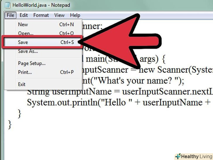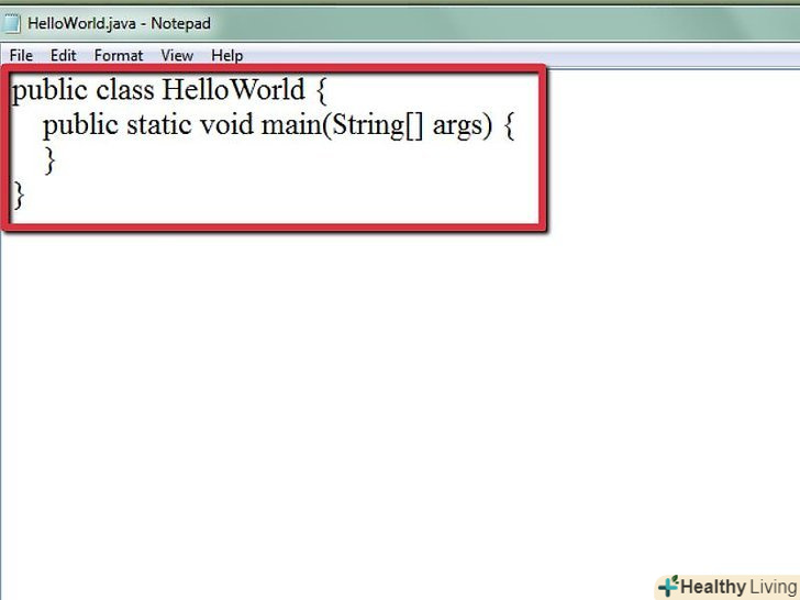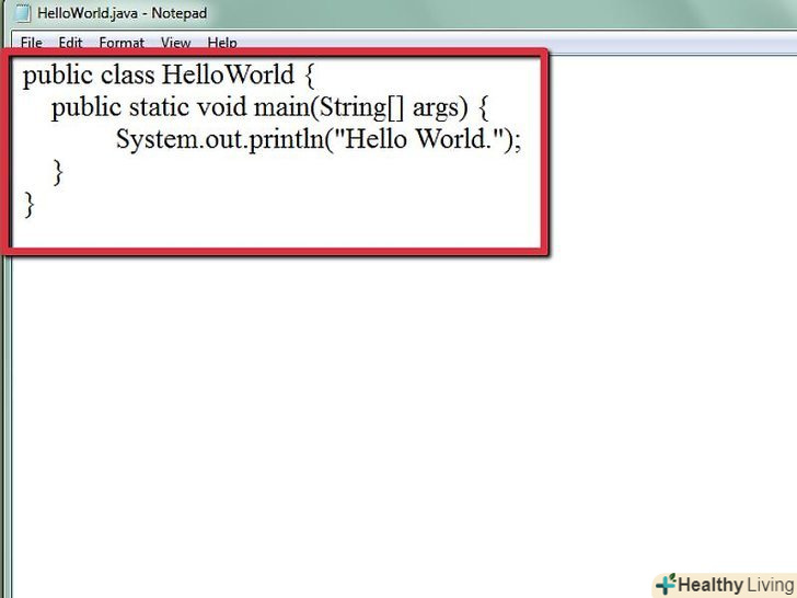 Для початку ми створимо програму, яка буде видавати напис Hello World.створіть новий файл у текстовому редакторі та збережіть його як " HelloWorld.java". "HelloWorld" - це ім'я класу, яке має збігатися з назвою файлу, це важливо.