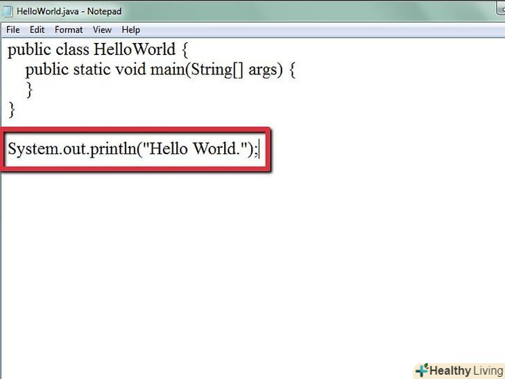 Введіть рядок коду " Hello World."System.Out.Println("Hello World.");