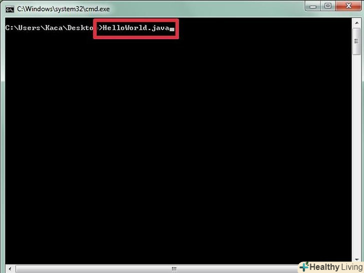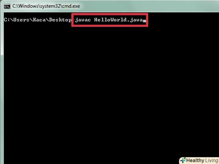 - Збережіть файл і відкрийте командний рядок або термінал, щоб скомпілювати програму. Зайдіть в папку, де ви зберегли файл HelloWorld.java і введіть в Javac (оптимізуючий компілятор мови java) HelloWorld.java. Таким чином, ви дасте знати компілятору, що хочете перетворити файл. Якщо в процесі будуть спливати помилки, компілятор повідомить вас про те, що ви зробили не так. В ідеалі у вас взагалі не повинно бути ніяких повідомлень від компілятора в процесі перетворення файлу. Після закінчення компіляції заглянете в папку, де був збережений файл HelloWorld.java, - там повинен з'явитися файл HelloWorld.class. Його і буде використовувати для запуску віртуальна машина Java.