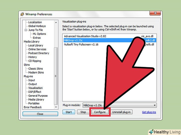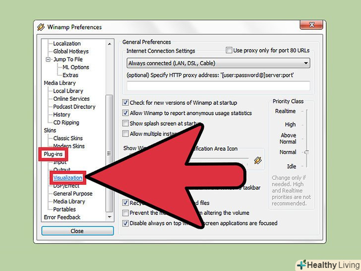 Візуалізація-це зорові образи в медіаплеєрі, які змінюються в залежності від темпу відтворюваної музики. Візуалізація-відмінний спосіб слухати музику, оскільки так у вас виникає зорове взаємодія зі звуками музики. Winamp-один з найбільш широко використовуваних медіаплеєрів, він володіє широким набором зорових образів, що дозволяють вивести відчуття від прослуховування музики на новий рівень.