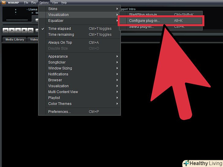 Натисніть кнопку Меню Winamp.виберіть рядок "Visualization"("зорові образи").
