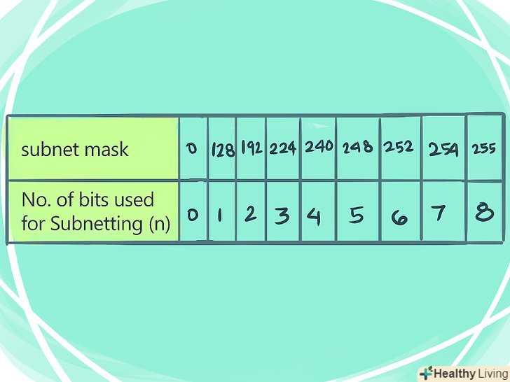 - Таблиця нижче дозволяє визначити " число бітів, що використовується для підмереж» (n) для відповідної маски підмережі.