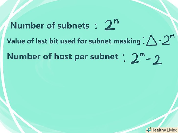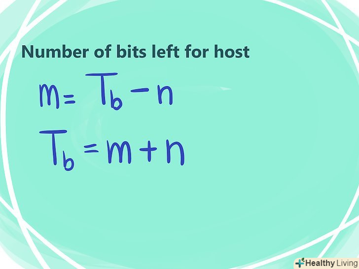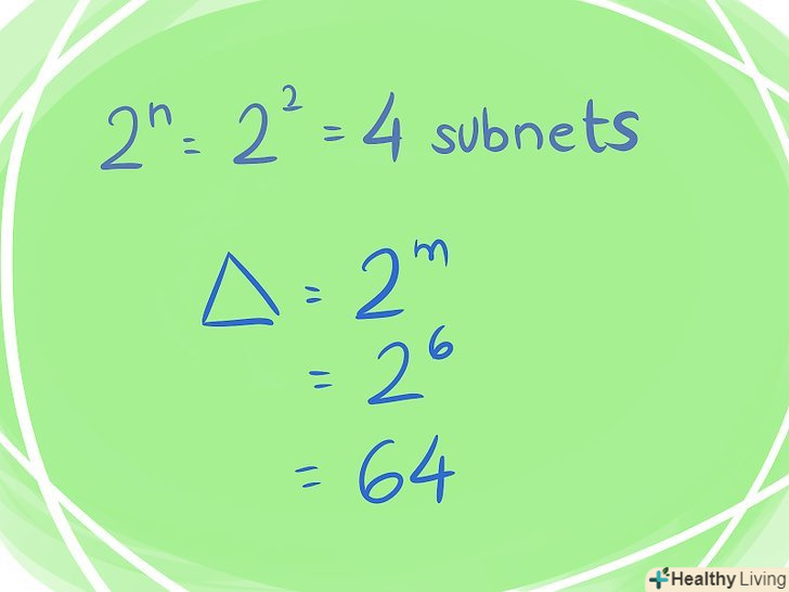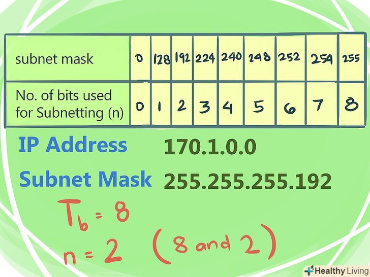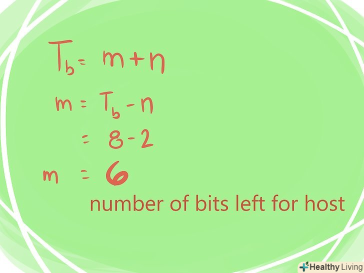 Загальна кількість бітів = Tb = 8 Число бітів використовується для підмереж = n = 2 (так як маска підмережі дорівнює 192, а відповідне «число бітів використовується для підмереж» з таблиці зверху дорівнює 2).