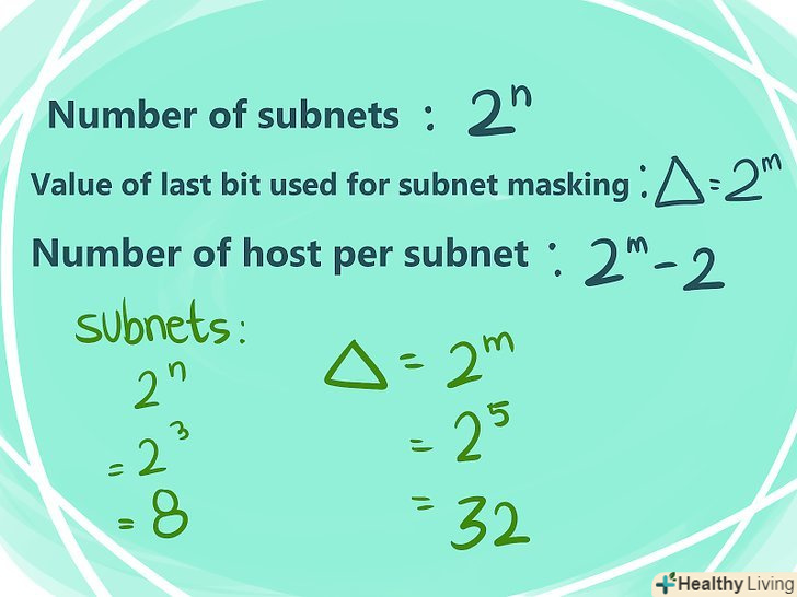 Тепер вам потрібно порахувати "число підмереж", рівне 2n, і " значення останнього біта, використовуваного для маски підмережі», яке дорівнює 2m. число хостів для підмережі дорівнює 2m - 2.- Число підмереж = 2n = 2 3 = 8