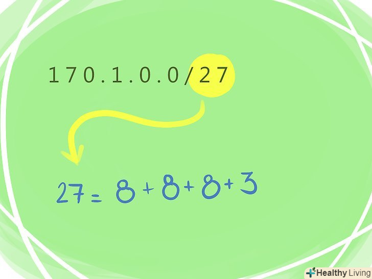 - Якщо префікс 27, запишіть його як 8 + 8 + 8 + 3 .