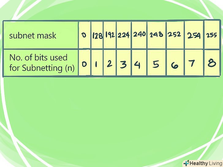Загальна кількість бітів = TB = 8Маска підмережі 0 128 192 224 240 248 252 254 255 Кількість бітів, що використовується для підмереж (n) 0 1 2 3 4 5 6 7 8