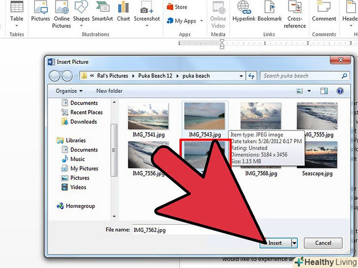 Виділіть потрібне зображення і натисніть "Вставити" (в нижній частині діалогового вікна).