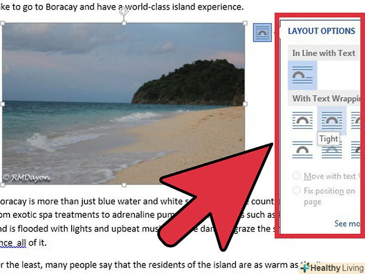 Перемістіть зображення по тексту після того, як ви вибрали тип обтікання текстом.