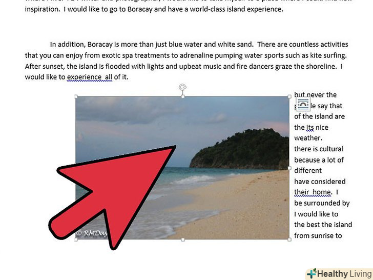 - Виберіть "перед текстом", щоб помістити зображення поверх тексту. У цьому випадку змініть колір / прозорість малюнка; в іншому випадку текст не буде видно.[3]