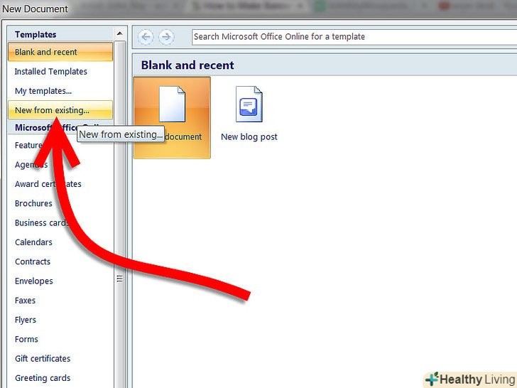 Відкрийте Microsoft Word.створіть новий документ і у спливаючому вікні виберіть "новий з існуючих" на вкладці шаблону.