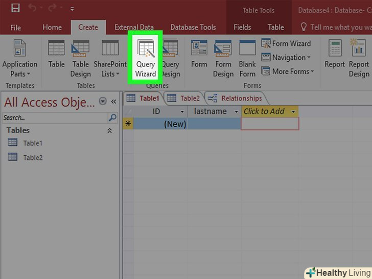 Скористайтеся майстром запитів, щоб створити запит на вибірку.якщо ви хочете створити базовий запит на вибірку, скористайтеся майстром запитів, щоб він крок за кроком допоміг вам у цьому. Ви можете знайти майстер запитів у вкладці "створення". Він дозволяє знаходити потрібні поля в таблиці.
