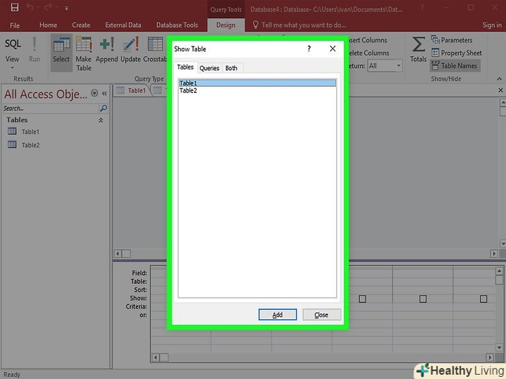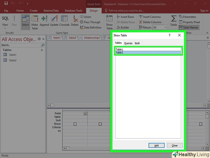 Виберіть таблицю. Відкриється вікно вибору таблиць. Двічі клацніть по потрібній таблиці для запиту, а потім натисніть "Закрити".