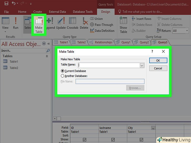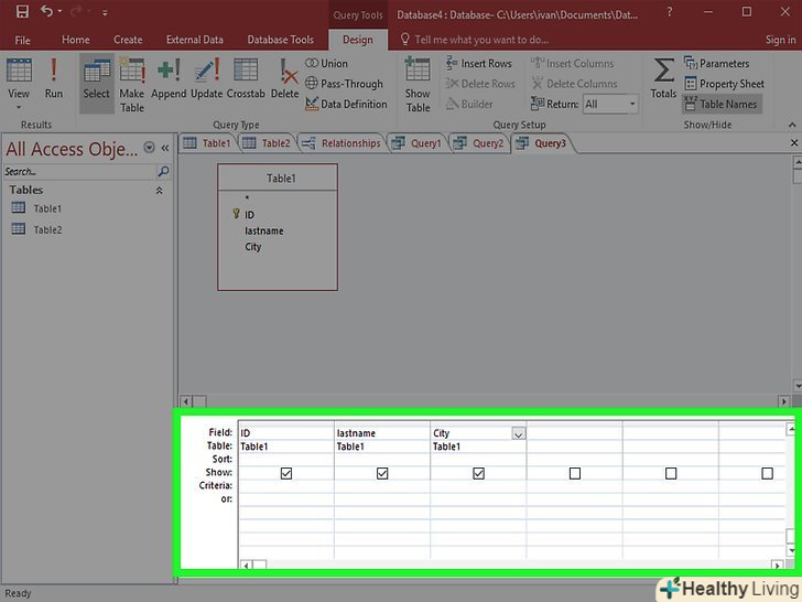 Протестуйте запит, щоб переконатися, що він виводить потрібні результати. перш ніж створити таблицю, виконайте запит, щоб переконатися, що він витягує необхідну вам інформацію. Налаштовуйте критерії і поля, поки не отримаєте потрібний вам результат.