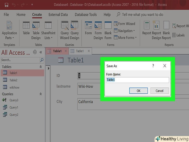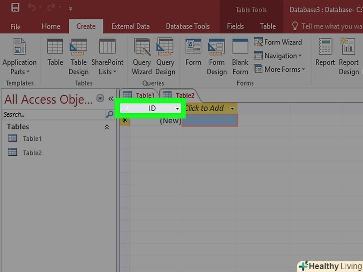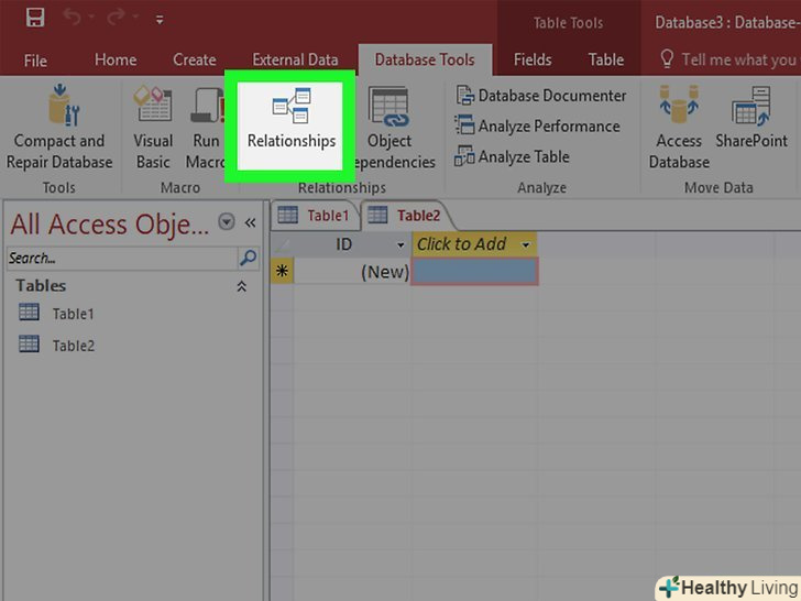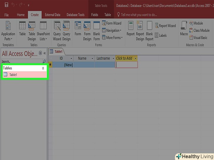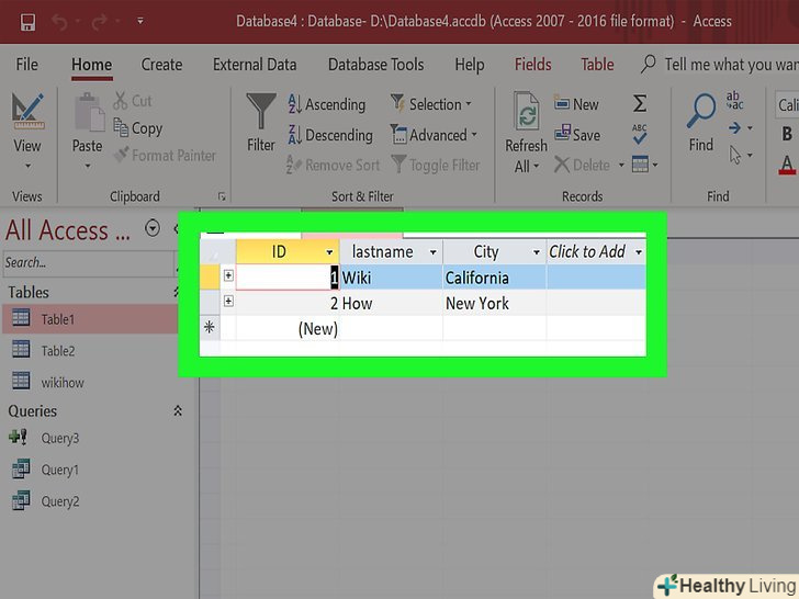 Додайте ще таблицю.різні записи слід зберігати в різних базах даних. Так бази даних будуть працювати безпомилково. Наприклад, в одній таблиці буде міститися інформація про клієнтів, в іншій — про замовлення. Потім ви зможете пов'язати таблицю про клієнтів з інформацією в таблиці про замовлення.- У розділі» Створення "вкладки" додому " натисніть кнопку Створення таблиці. Нова таблиця з'явиться у вашій базі даних. Внесіть потрібну інформацію так само, як робили це в першій таблиці.