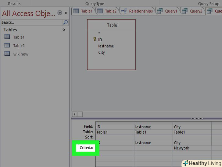 Відкрийте інструмент "Конструктор запитів". запит за параметрами дозволить вам встановити, які саме результати ви хочете бачити кожен раз, коли робите запит. Наприклад, якщо у вашій базі даних є клієнти з різних міст, ви можете налаштувати запит за параметрами, щоб виводити результати для певного міста.