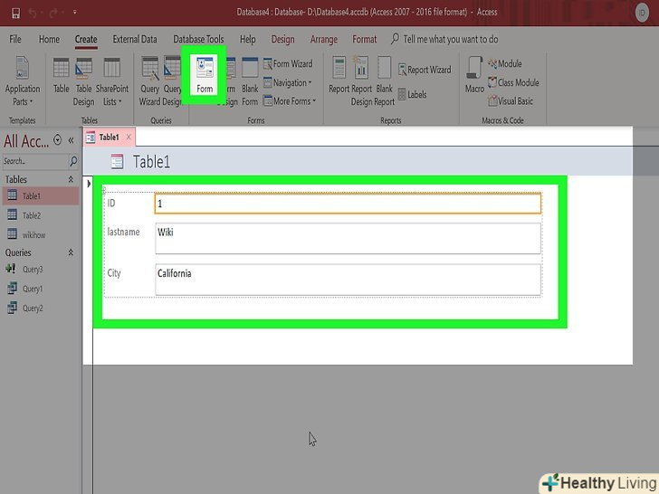 Виберіть таблицю, для якої Ви хочете створити форму.форми відображають дані по кожному полю і дозволяють з легкістю перемикатися між записами або створювати нові. Форми-необхідний інструмент при тривалих періодах введення інформації; більшість користувачів вважають, що користуватися формами набагато простіше, ніж таблицями.