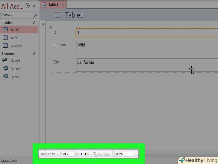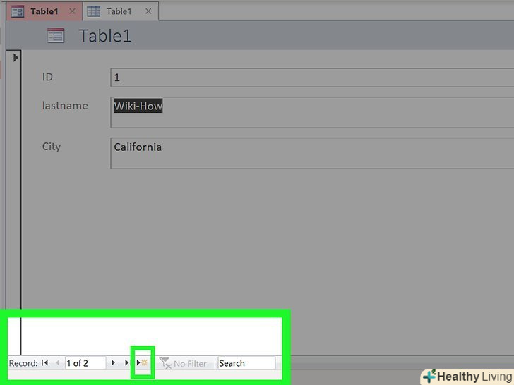 Вносьте нові записи.натисніть "Додати запис" біля кнопок навігації, щоб додати новий запис в кінці списку. Потім ви зможете використовувати поля для внесення даних у порожні записи всередині таблиці. Це набагато простіше, ніж додавати нові дані через табличний вигляд.