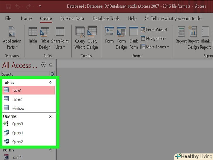 Визначте найкращу структуру для зберігання вашої інформації.якщо створюєте порожню базу даних, вам варто заздалегідь подумати, як організувати зберігання своєї інформації і заздалегідь додати необхідну структуру. Існує кілька варіантів, як ви можете змінювати і взаємодіяти зі своїми даними в Access:- Таблиці-основний вид зберігання інформації. Таблиці можна порівняти з таблицями Excel: всі дані розподіляються по рядках і стовпцях. Саме тому імпортувати інформацію з Excel або інших табличних редакторів відносно просто.