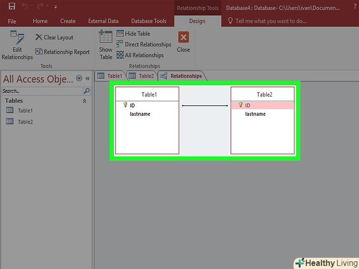 Натисніть на вкладку "робота з базами даних".виберіть «Схема даних». Відкриється вікно з оглядом всіх таблиць в базі даних. Кожне поле буде вказано під назвою його таблиці.- Перш ніж створювати зв'язок, необхідно створити поле для зовнішніх ключів. Наприклад, якщо ви хочете використовувати «ідентифікатор клієнта» в таблиці замовлень, створіть поле під ім'ям "клієнт" і залиште його порожнім. Воно повинно бути такого ж формату, як і те, з яким ви встановлюєте зв'язок (в цьому випадку числа).