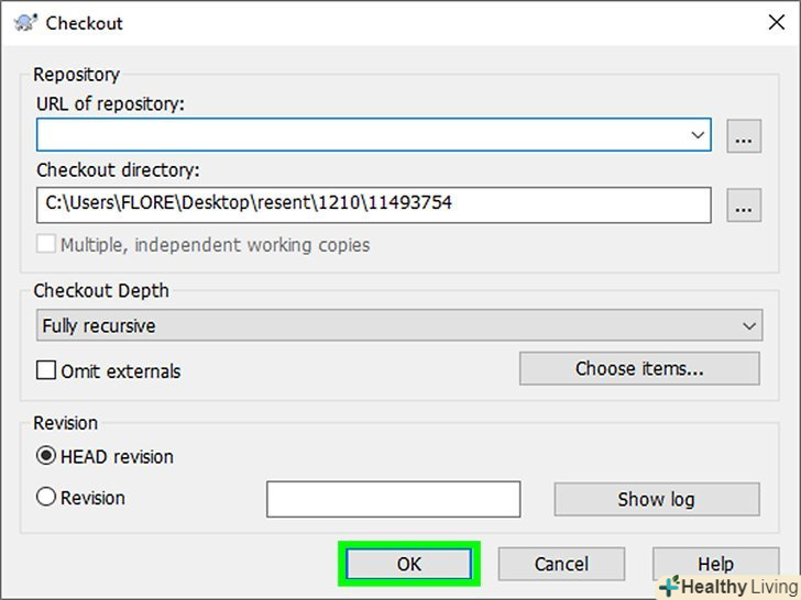 - Витягти в папку (checkout directory): це місце розташування у вашій локальній файловій системі, де з'являться витягнуті файли. За замовчуванням, це буде те місце, де ви знаходитесь в браузері Windows, однак ви можете змінити цей шлях.