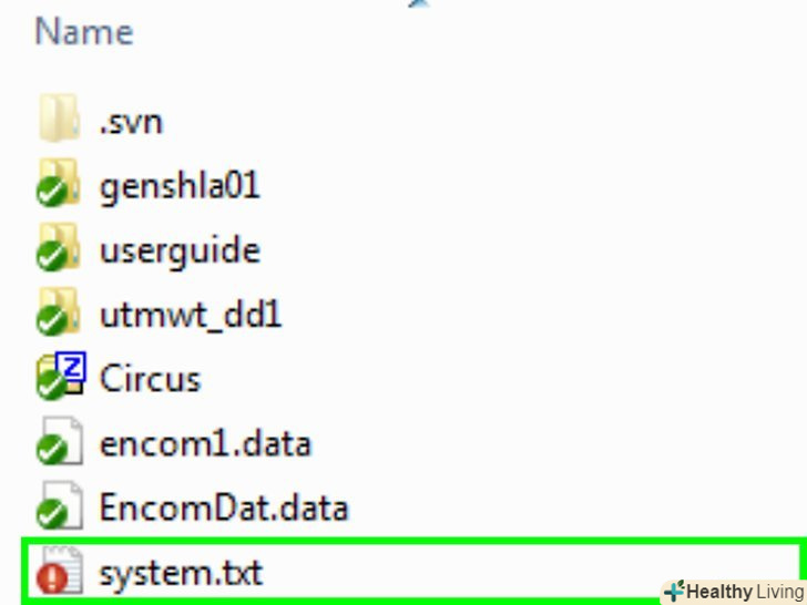 Як ви можете помітити, файл 'system.txt', який був змінений і збережений, тепер відображається з іншою іконкою, у вигляді знаку оклику в червоному кружечку, що означає, що файл зазнав зміни.