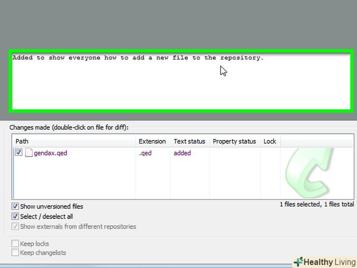 Гарною практикою буде складання повідомлень, коли ви виробляєте комміт.хоча Subversion надає вам безліч інструментів для детального аналізу змінених файлів, завжди зручно мати короткий опис під рукою для довідки. Для завершення комміта, натисніть Ок.