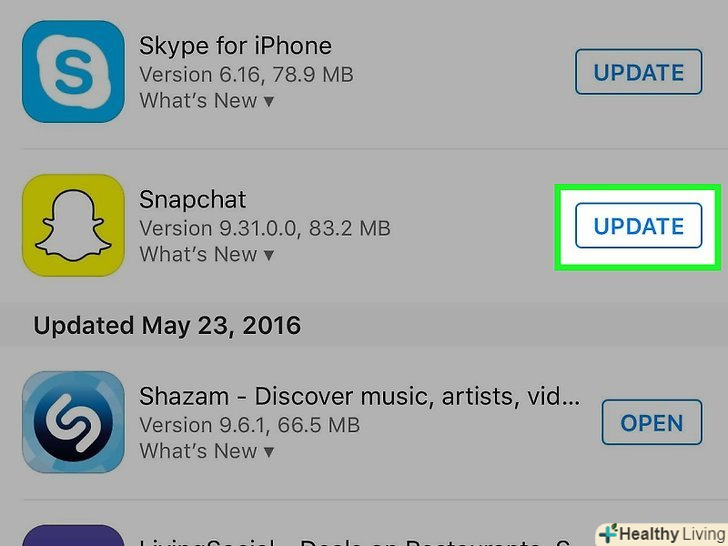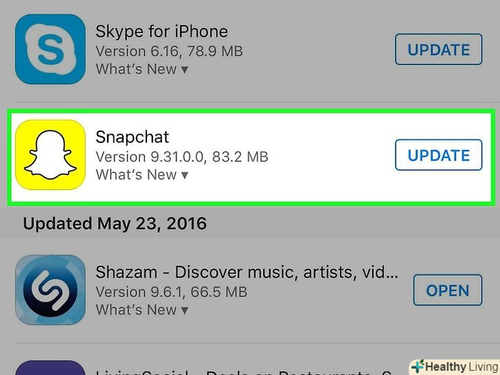 Відкрийте App Store і оновіть Snapchat.для цього виконайте дії, які описані в другому розділі цієї статті.