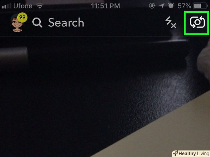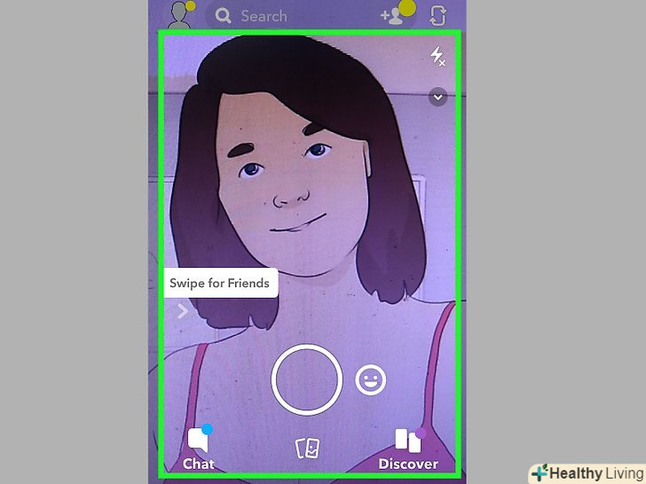Увімкніть фронтальну камеру (тобто перейдіть в так званий режим «Селфі»).як правило, ця камера включається автоматично при запуску Snapchat. На екрані відобразиться зображення, одержуване з фронтальної камери.