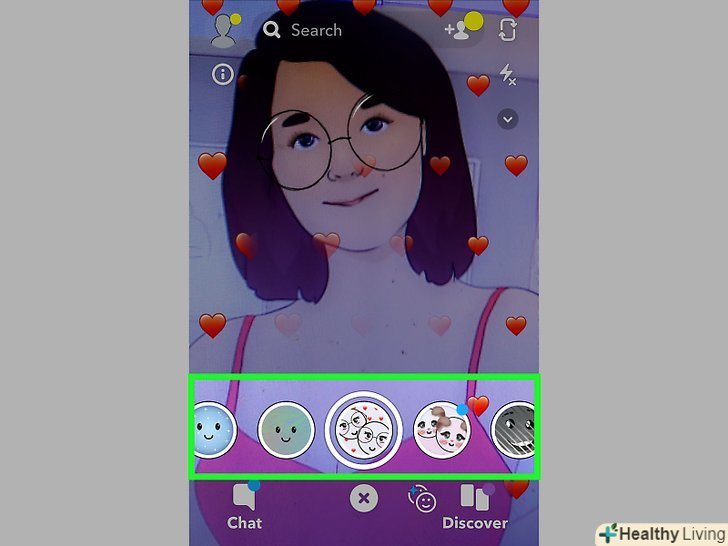 Скористайтеся новою функцією "лінзи". якщо ви оновили Snapchat і володієте пристроєм, який підтримує функцію «лінзи", можна отримати доступ до спеціальних ефектів – для цього натисніть на обличчя і утримуйте натискання (читайте про це в третьому розділі).