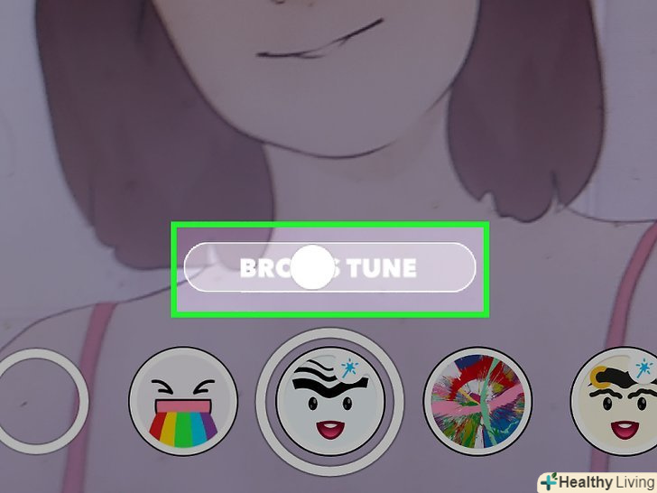 Натисніть на обличчя і утримуйте натискання протягом декількох секунд.на обличчі з'явиться сітка, а в нижній частині екрана відобразяться доступні «лінзи».- Якщо сітка і» лінзи " не відкрилися, перейдіть в добре освітлене приміщення і зробіть так, щоб на екрані відобразилося все обличчя. Натисніть на обличчя і утримуйте натискання протягом декількох секунд. Пам'ятайте, що деякі пристрої взагалі не підтримують функцію "лінзи".