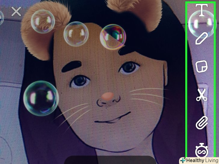 Відредагуйте і відправте снап (як зазвичай). зроблений або записаний снап з обраної "лінзою" можна відредагувати, а саме додати текст, фільтри, стікери і малюнки. Після редагування снап можна відправити друзям або додати в історію.