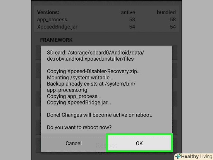 Перезавантажте Android-пристрій (при появі відповідного запиту).це дозволить завершити процес установки Xposed.