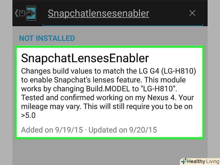 - Деякі користувачі повідомляють про проблеми з функцією "лінзи" навіть на пристроях під управлінням Android 5.0 або пізньої версії. Якщо це ваш випадок, дочекайтеся нового оновлення Snapchat. Якщо Android-пристрій зламано, ви можете скористатися додатком Xposed (читайте про це в четвертому розділі).
