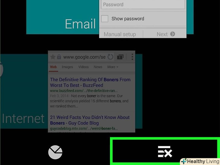 Натисніть " X " або "Видалити все", щоб повністю очистити список недавніх додатків. ви знайдете цю опцію в правому нижньому кутку списку вкладок. [1]