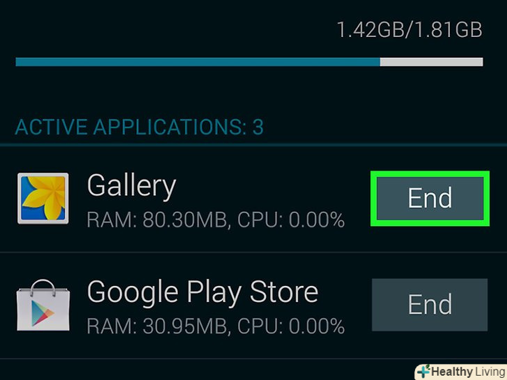 Натисніть "Закрити" поруч із програмою, яку хочете закрити. додаток буде закрито, що звільнить системні ресурси.
