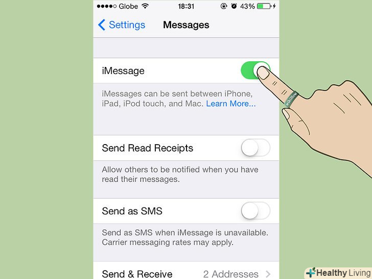 Переключіть Налаштування iMessage на»ON".