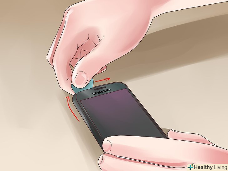 Вставте медіатор або будь-який інший тонкий і легкий предмет в щілину. Це запобігає вислизанню скла.- Якщо скло буде руйнуватися, то скріпіть його клейкою стрічкою, щоб тримати його в цілісності.