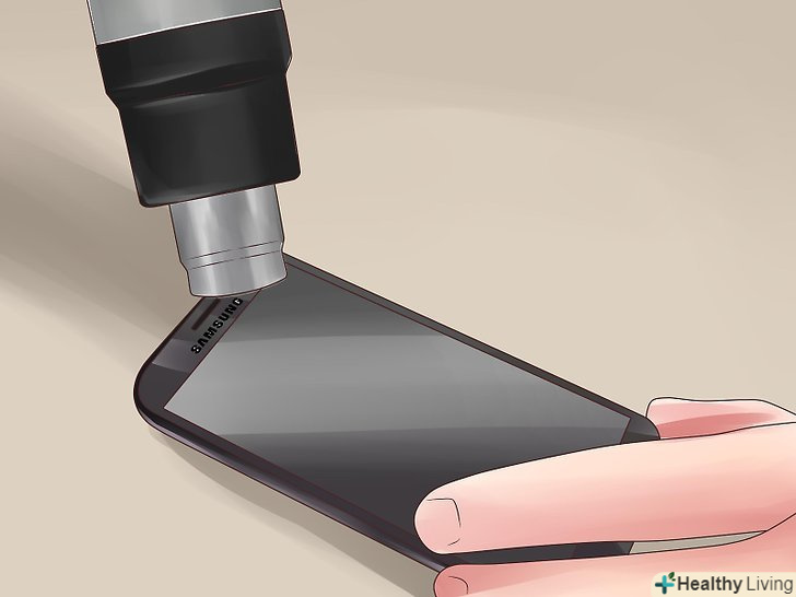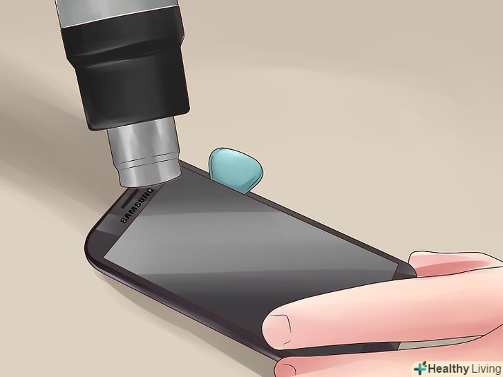 Увімкніть фен і нагрійте передню панель телефону.утримуйте фен протягом 3-5 хвилин на відстані близько 15 сантиметрів від телефону.- Не перегрівайте скло, так як це може розтопити дигітайзер і викликати вицвітання екрану. Якщо це сталося, негайно вимкніть фен.