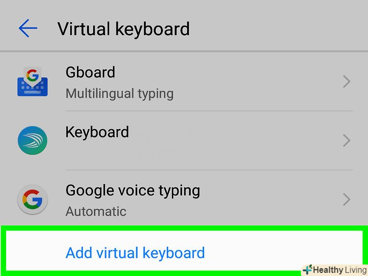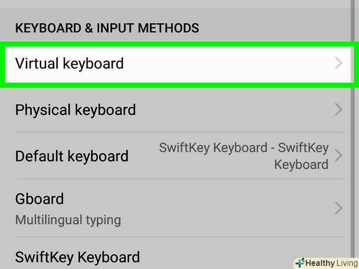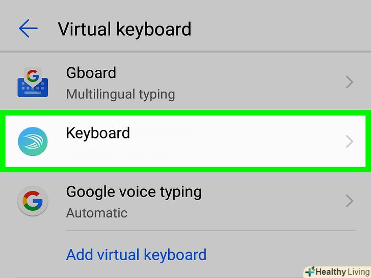 НатиснітьVirtual keyboard (Віртуальна клавіатура).так ви відкриєте список доступних вам додатків для введення.