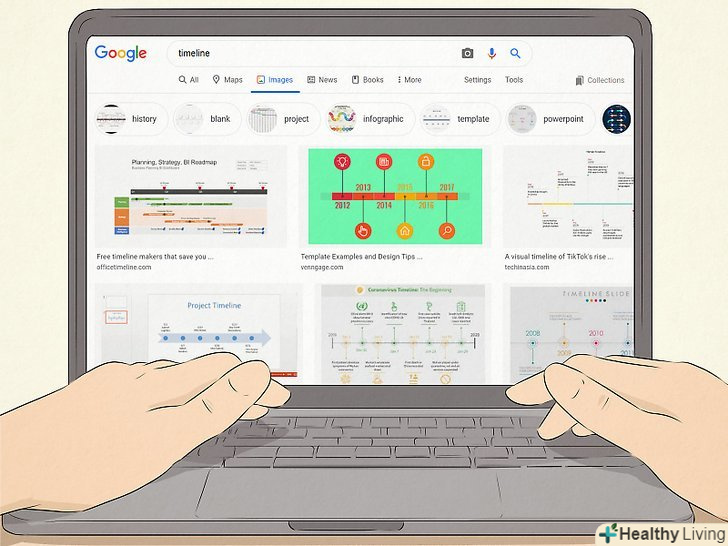 Вивчіть приклади хроніки.щоб отримати уявлення про те, як зазвичай виглядає часова шкала, задайте пошук в Інтернеті за відповідним запитом. Перегляньте кілька результатів, щоб ясно зрозуміти, як продовжити проект.