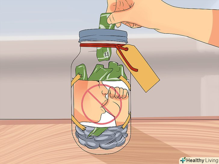 Спробуйте використовувати негативне підкріплення.хоча це не найкращий спосіб позбутися від шкідливої звички, деяким він допомагає. Наприклад, змащуйте великий палець чимось гострим або неприємним. Можна також змусити себе платити за шкідливу звичку — заведіть спеціальну банку і кладіть в неї гроші кожен раз, коли зловите себе на тому, що смокчете палець. Однак врахуйте, що подібний спосіб сам по собі навряд чи виявиться достатнім для того, щоб позбутися від шкідливої звички. Проте він допоможе вам краще усвідомлювати свою поведінку.- Якщо негативне підкріплення викликає у вас почуття провини, відмовтеся від даного способу. При спробах відмовитися від будь-якої шкідливої звички ви не повинні відчувати сором.