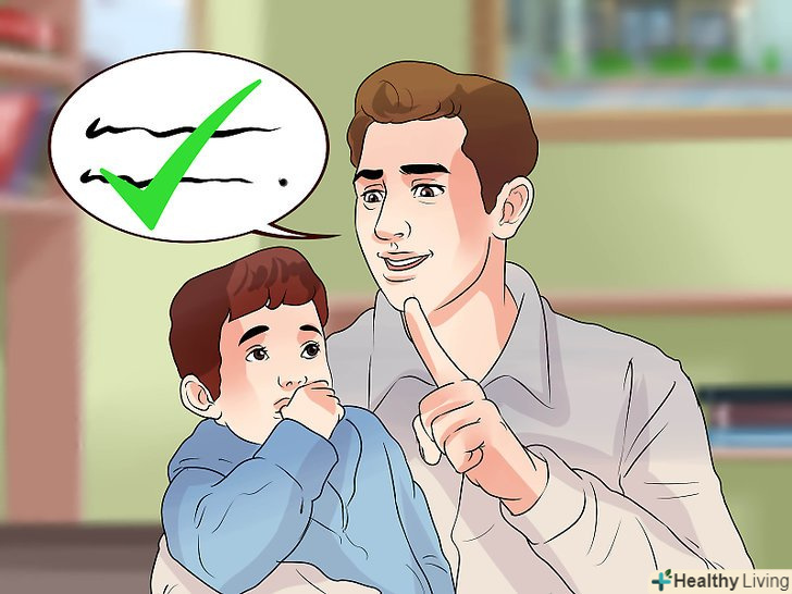 Будьте терплячими.при зміні поведінки дитини часто ключовим моментом є послідовність. Якщо ви вирішите заохочувати дитину, контролюйте його кожен день і винагороджуйте за правильну поведінку. Якщо ви нагадуєте дитині про те, щоб він не смоктав палець, не забувайте робити це. Згодом він відучиться від цієї звички.[7]- Можливо, іноді ви будете відчувати розчарування або вам буде здаватися, що не спостерігається ніякого прогресу. Проте продовжуйте свої зусилля і заохочуйте правильну поведінку дитини.