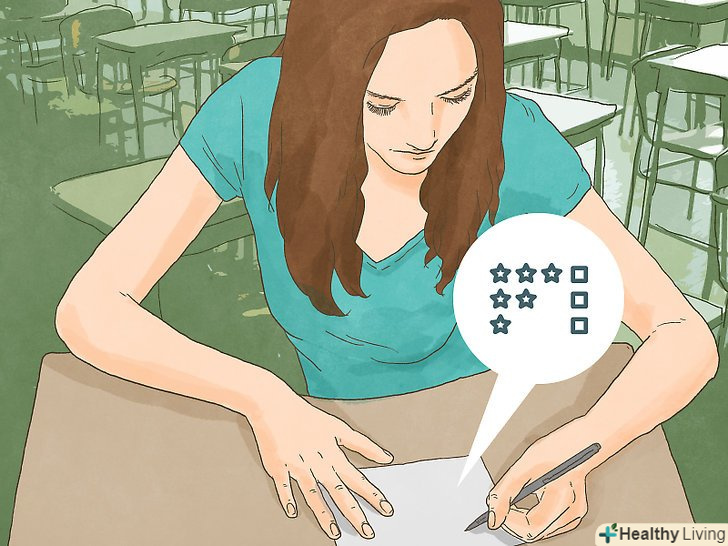 Якщо ви застрягли на важкому екзаменаційному питанні, стратегічне вгадування збільшить ваші шанси на правильну відповідь. Знайдіть смислові підказки в самому завданні, які допоможуть вам вирішити каверзне питання. Вибирайте відповіді, які здаються вам знайомими, навіть якщо це лише ледь вловиме відчуття дежавю. Знайдіть якусь систему в питаннях " правда чи Брехня» і виберіть «брехня», якщо в питанні присутні абсолютні значення, такі як «все» або «нічого». Вгадуючи правильну відповідь впитанні з декількома варіантами відповідей, виберіть метод виключення, шукайте граматичні підказки, а якщо не впевнені у виборі, віддайте перевагу найбільш докладної відповіді.